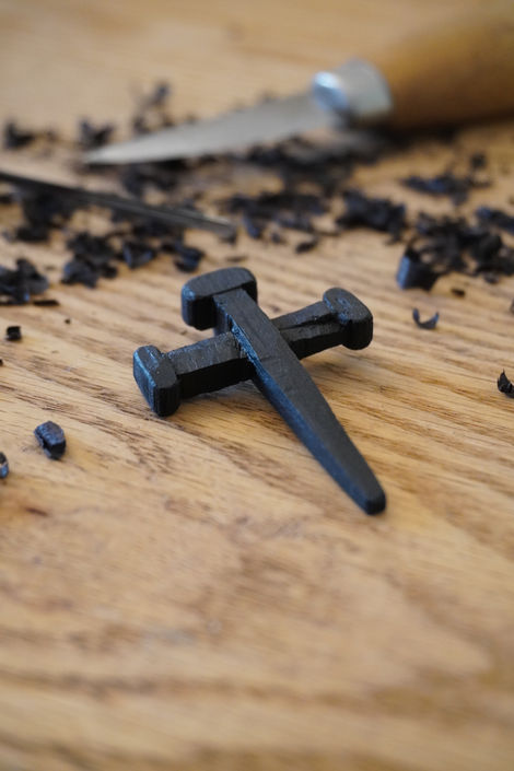 Three nail pendant cross I whittled. The cross, previously a symbol of death, now an image of life!